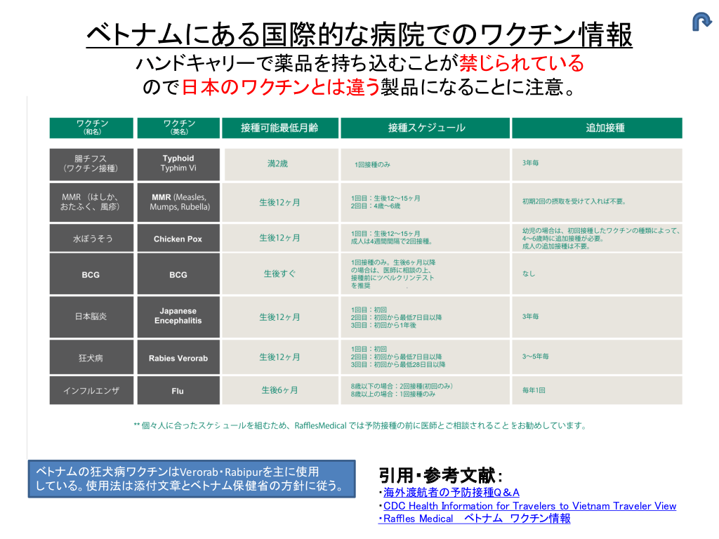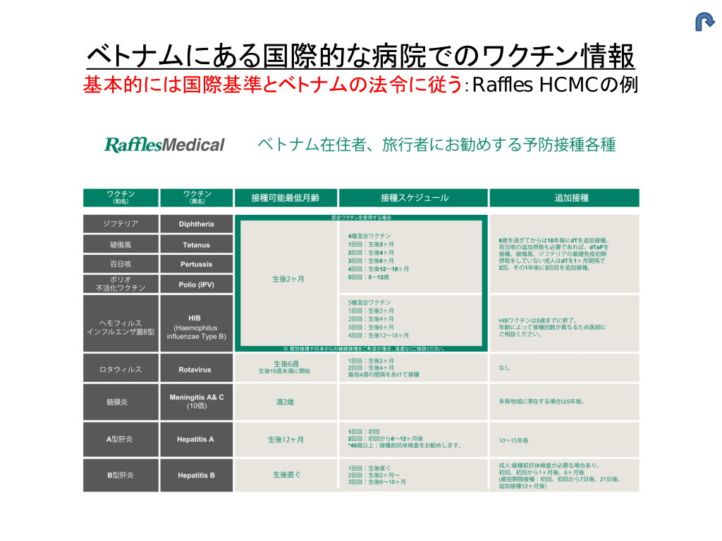 #104. ベトナムにある国際的な病院でのワクチン情報 基本的には国際基準とベトナムの法令に従う:Raffles HCMCの例
