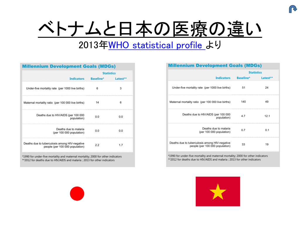 #21. ベトナムと日本の医療の違い 2013年WHO statistical profile より