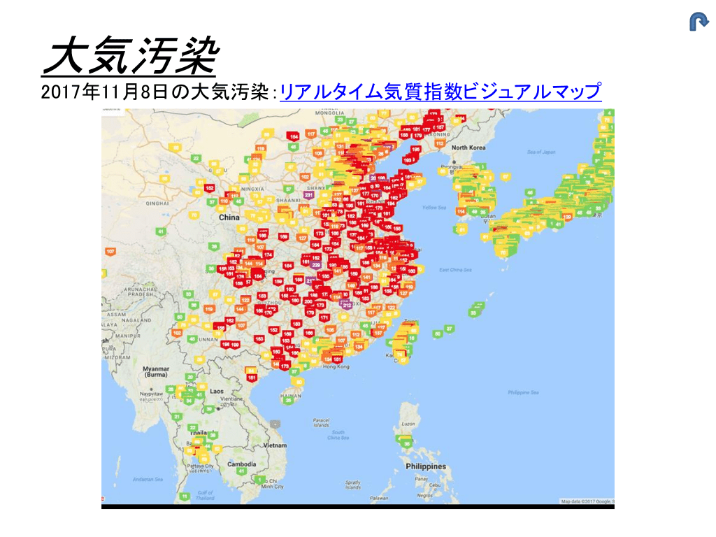#27. 大気汚染 2017年11月8日の大気汚染:リアルタイム気質指数ビジュアルマップ