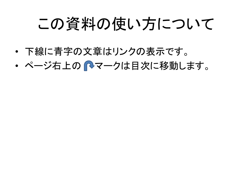 #3. この資料の使い方について • 下線に青字の文章はリンクの表示です。 • ページ右上の マークは目次に移動します。