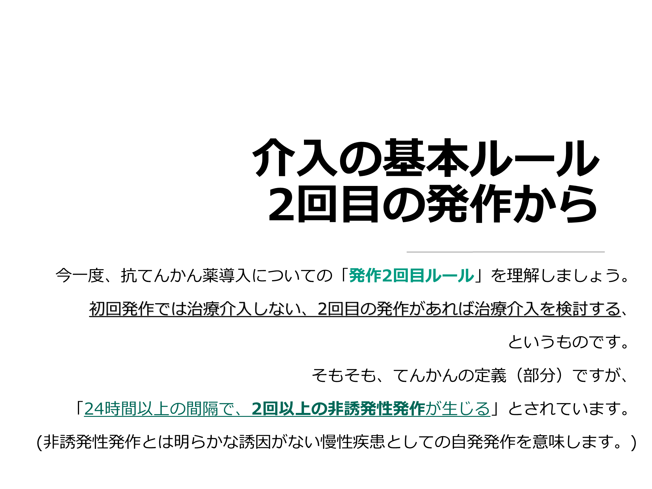 開始する場合 基本ルールでは、2回以上の発作で介入を検討する、でした。