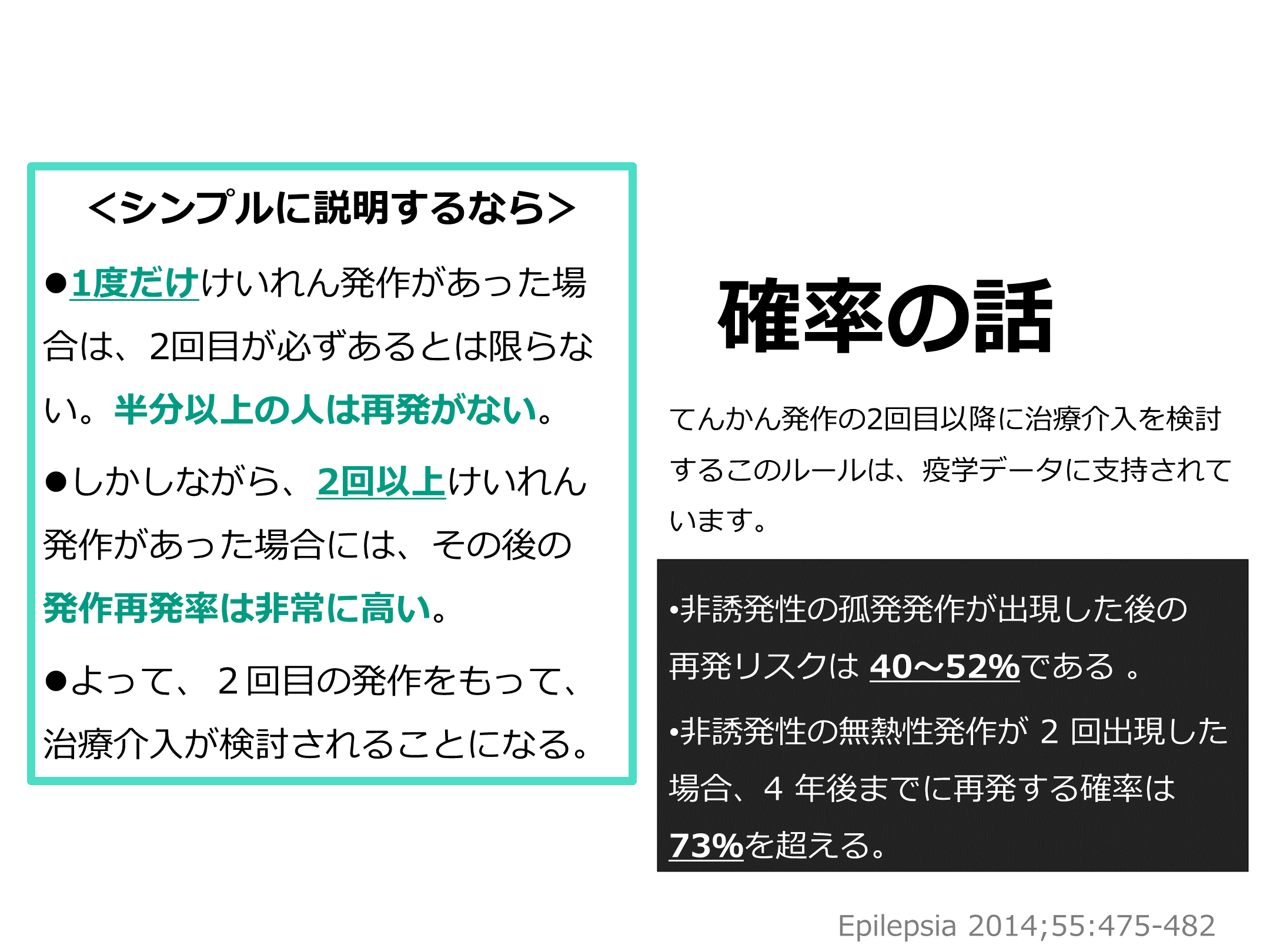 #8. 確率の話 てんかん発作の2回目以降に治療介入を検討するこのルールは、疫学データに支持されています。