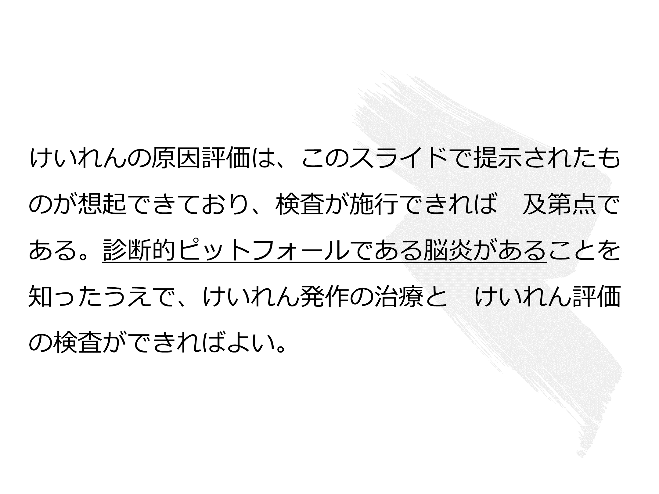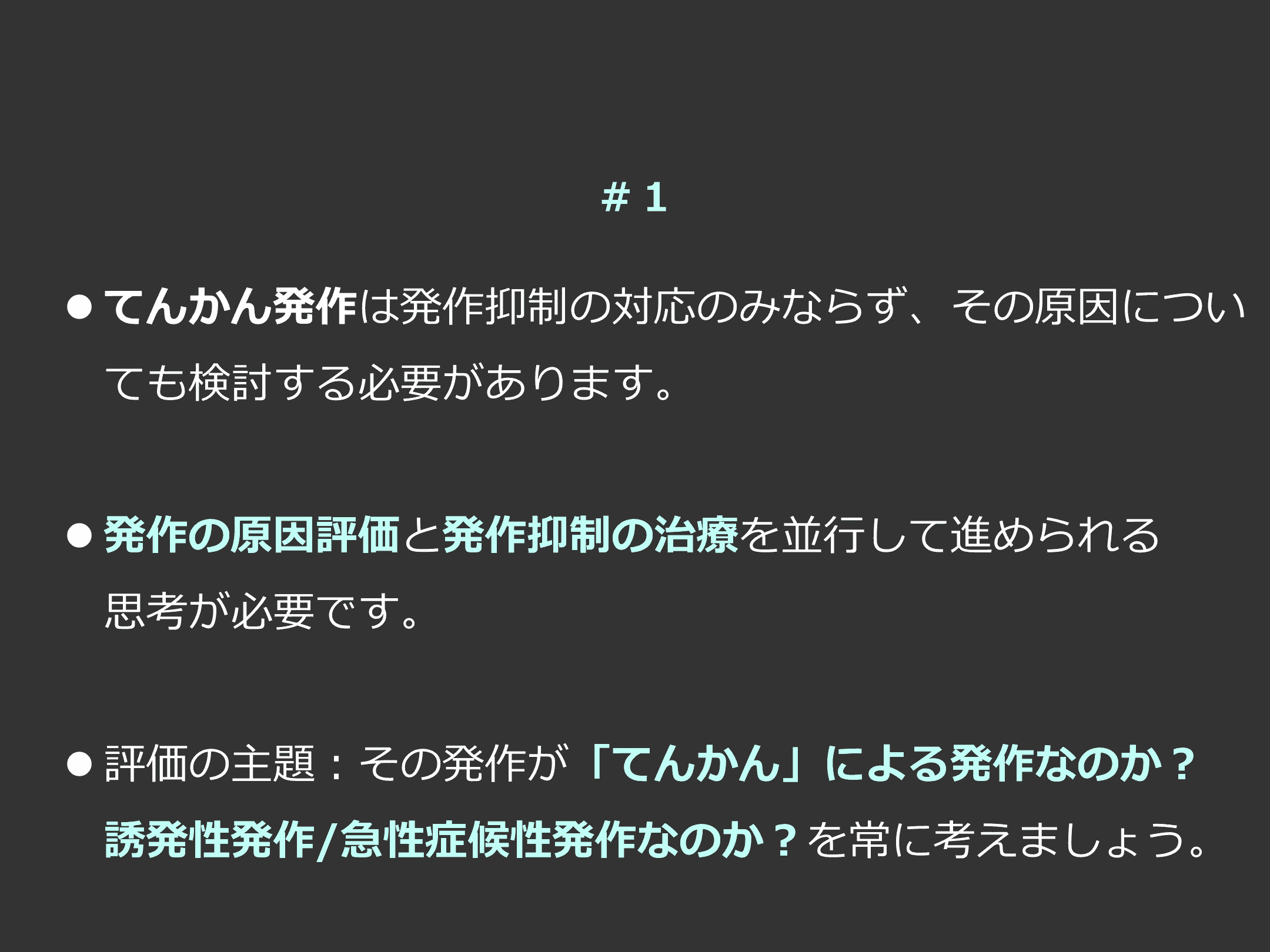 #14. #1 てんかん発作は発作抑制の対応のみならず、その原因についても検討する必要があります。