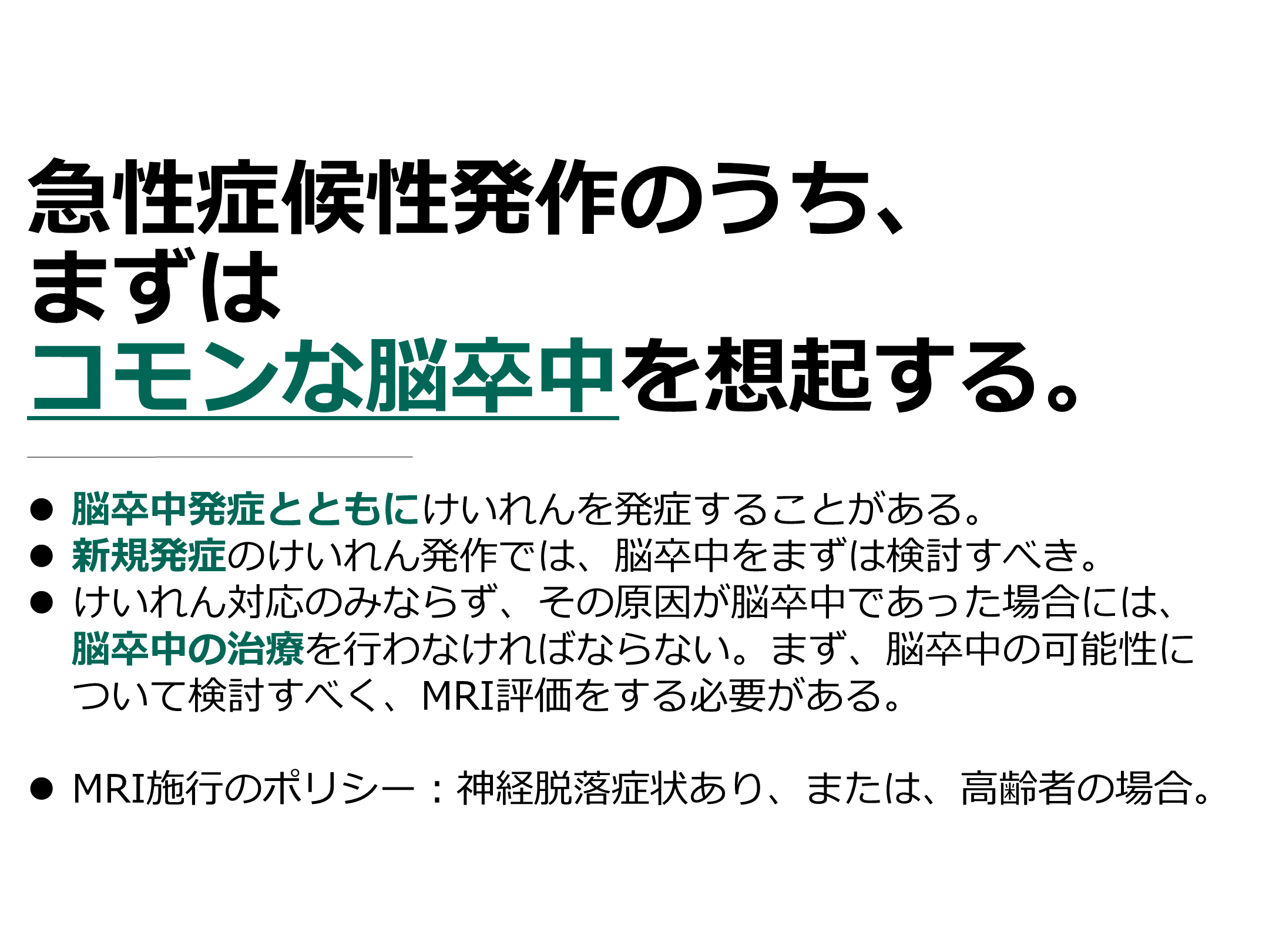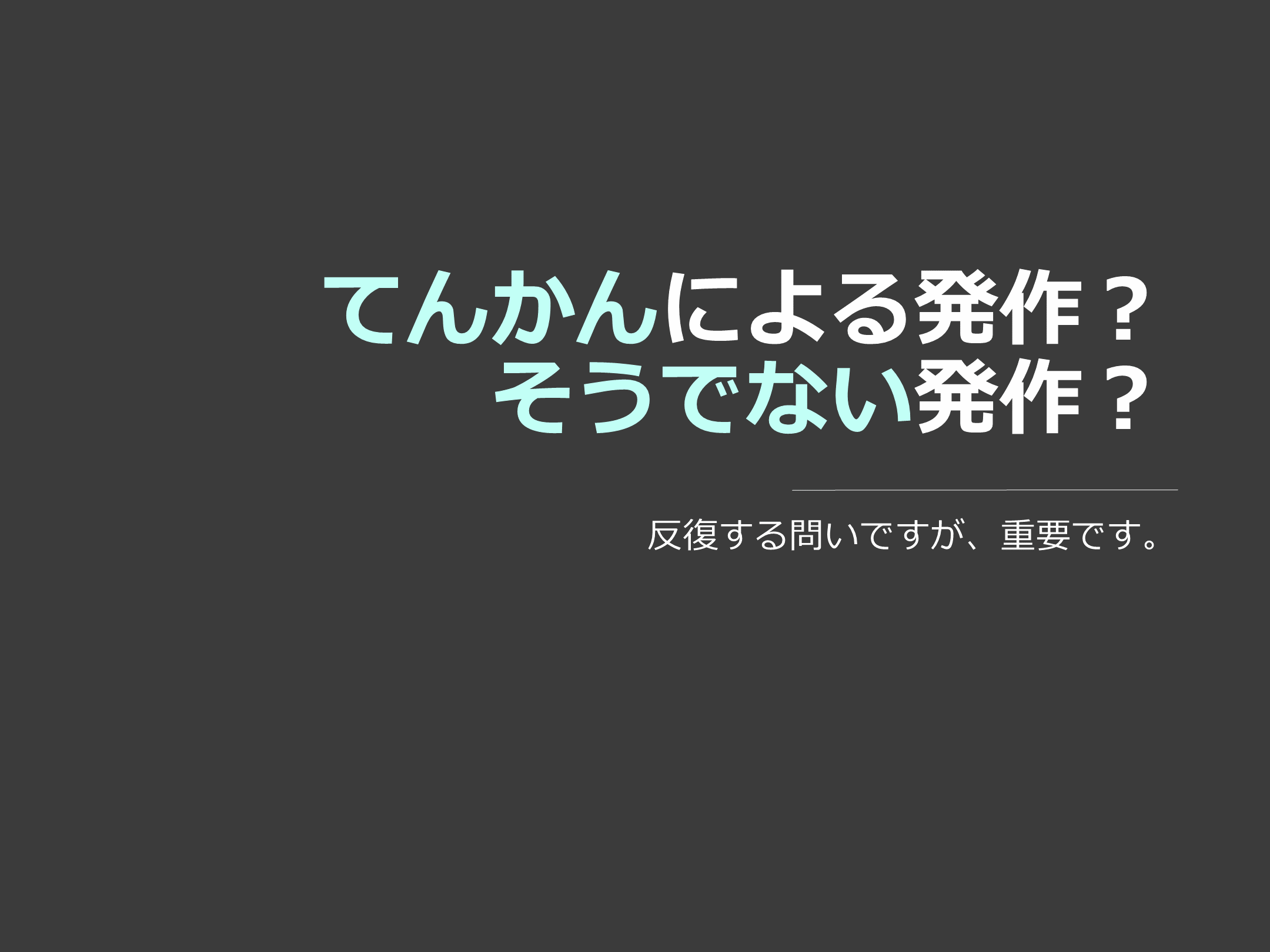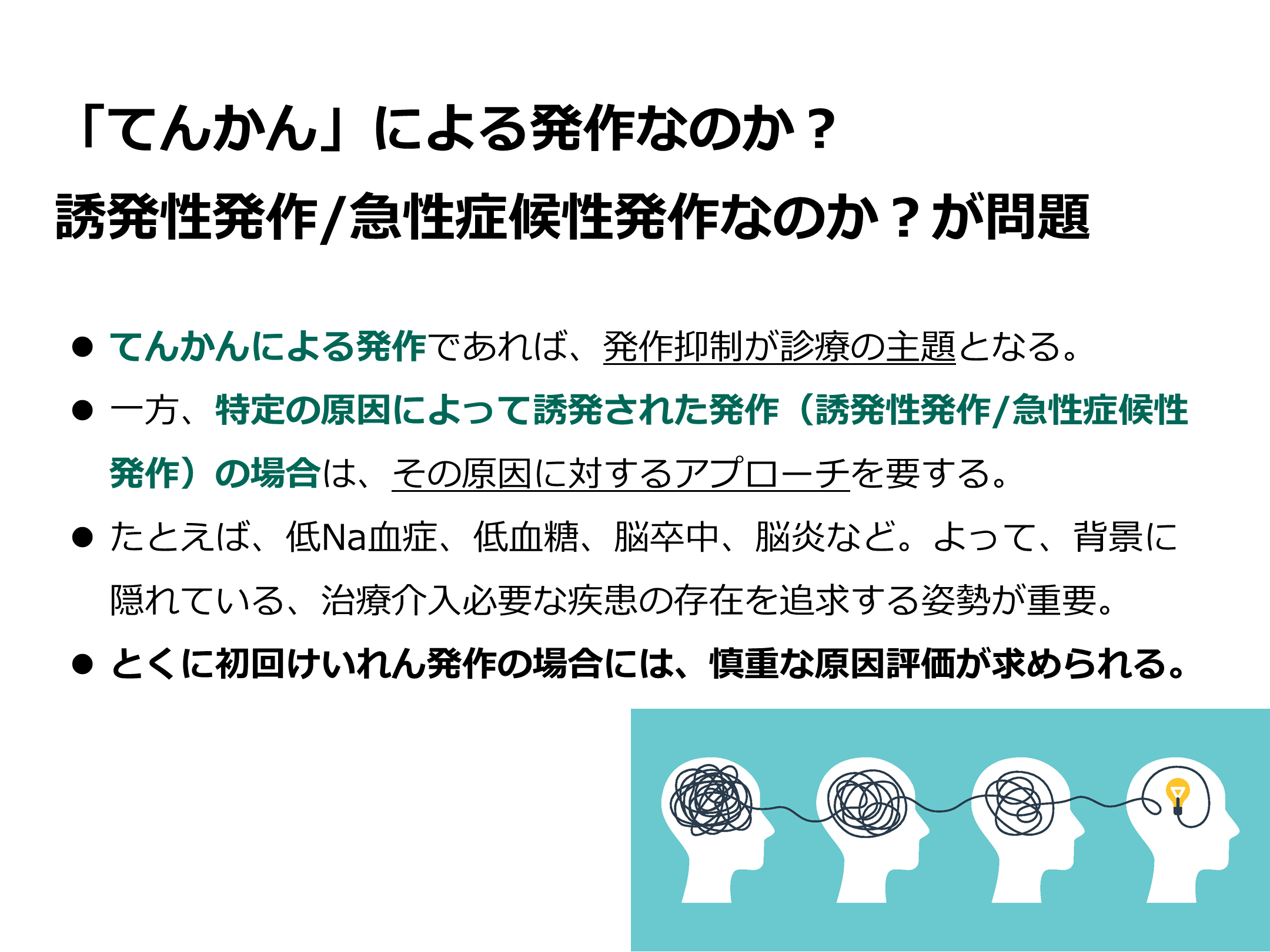 評価の主題:その発作が「てんかん」による発作なのか? 誘発性発作/急性症候性発作なのか?を常に考えましょう。