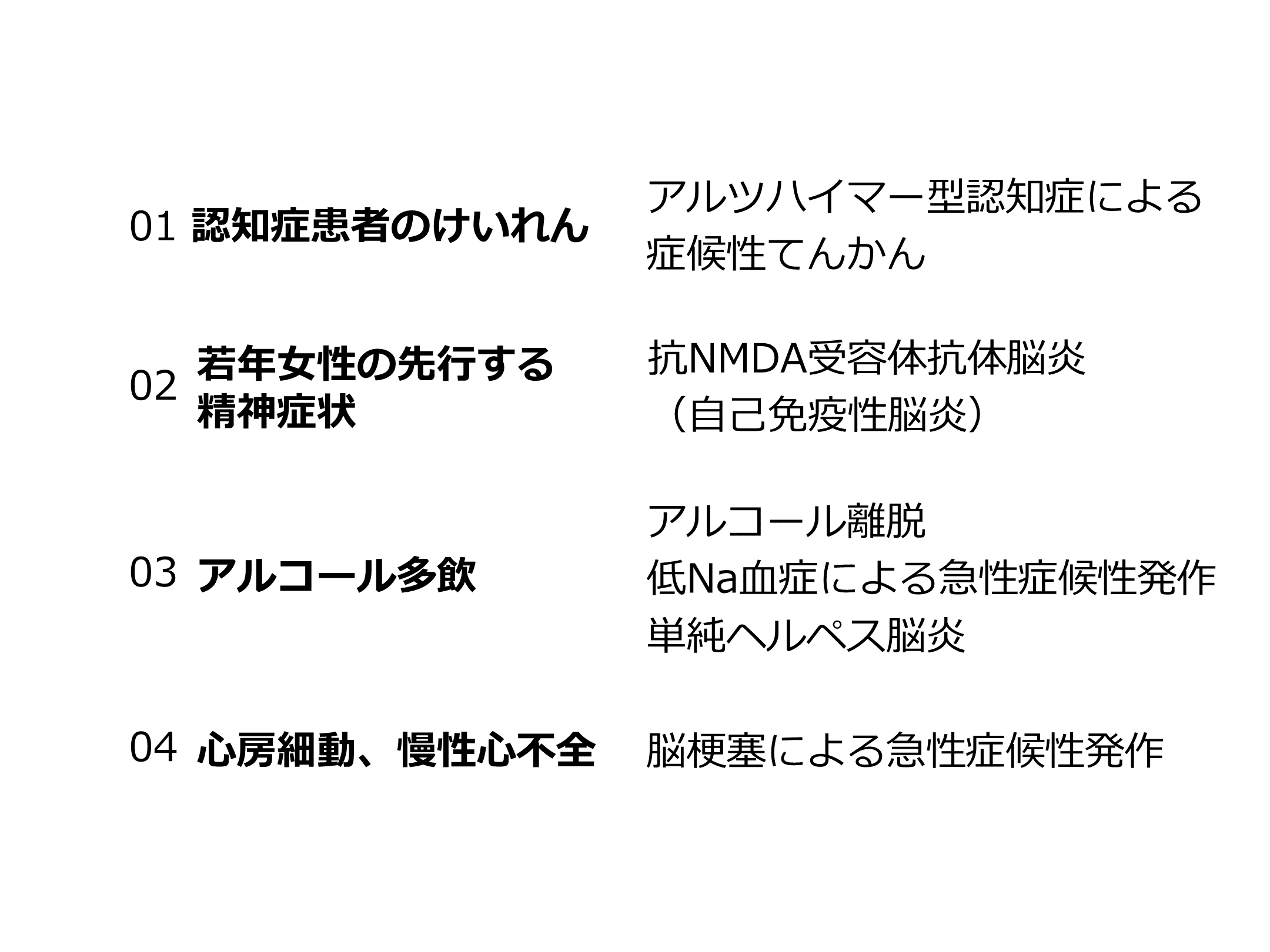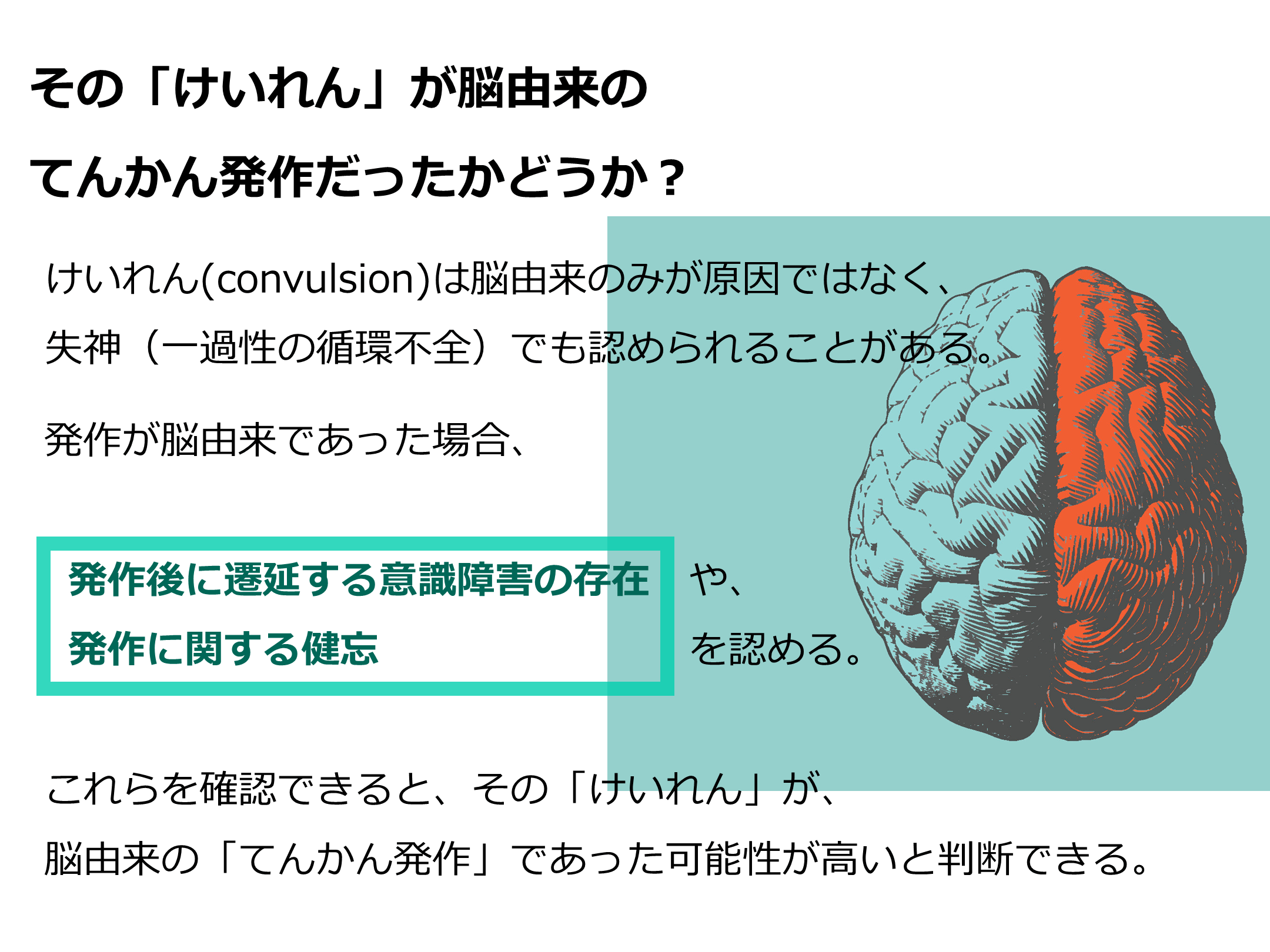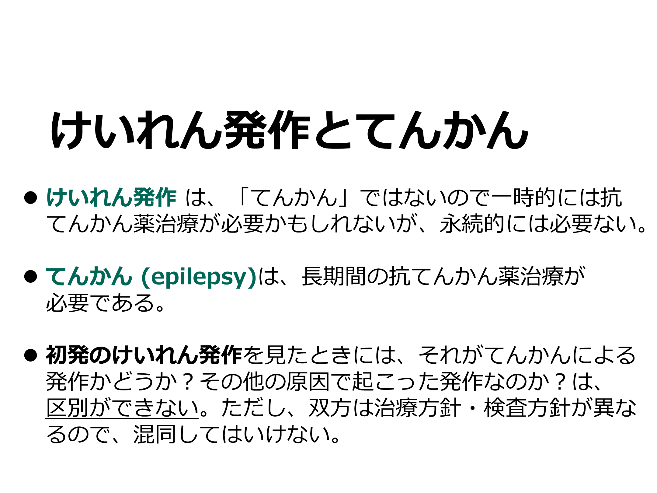評価の主題:その発作が「てんかん」による発作なのか? 誘発性発作/急性症候性発作なのか?を常に考えましょう。
