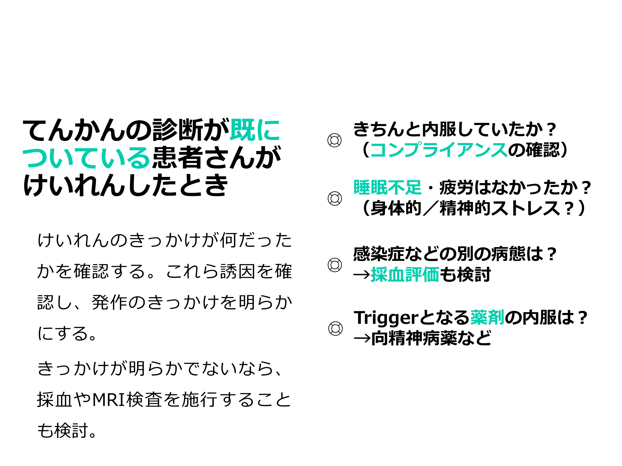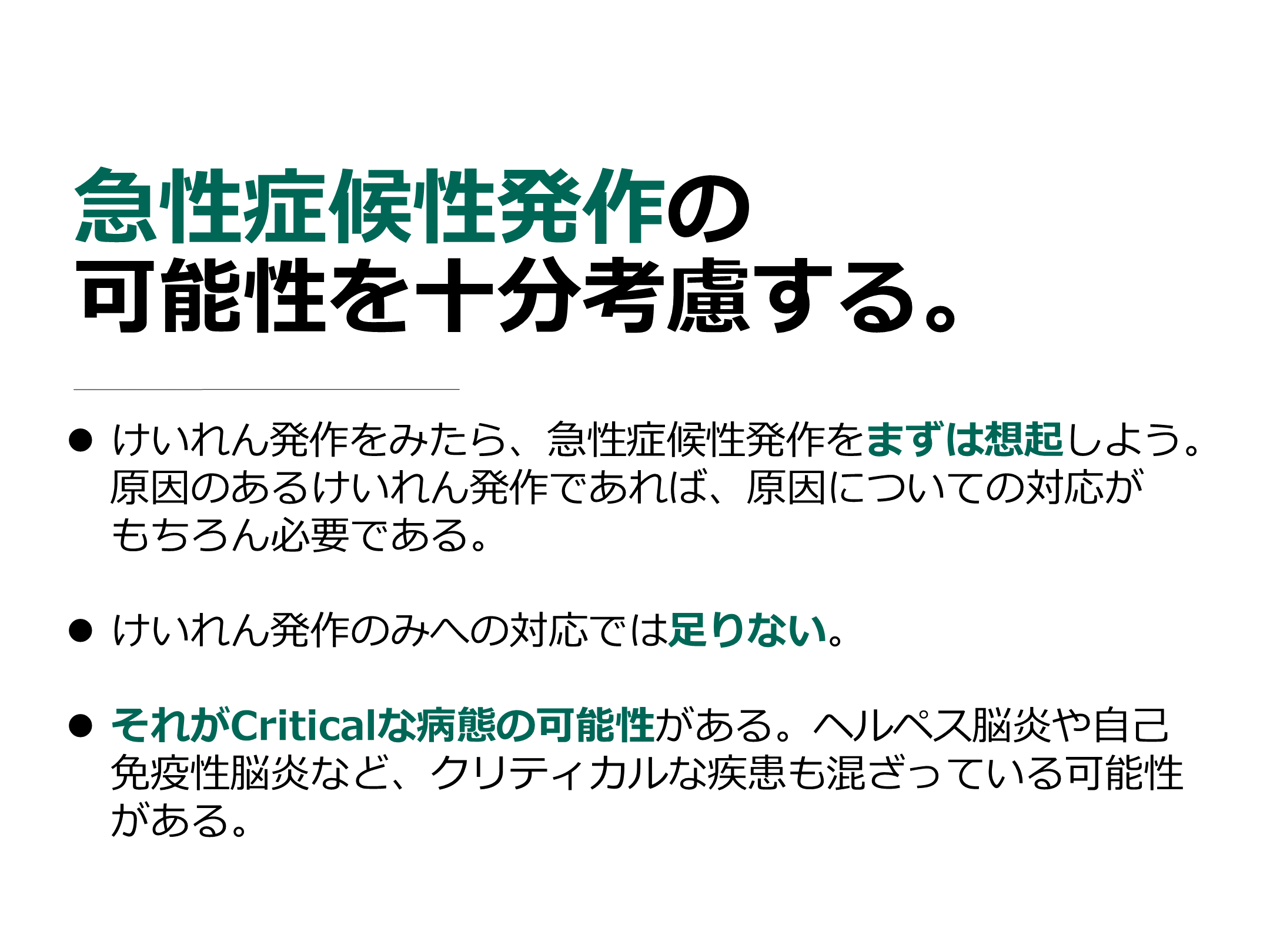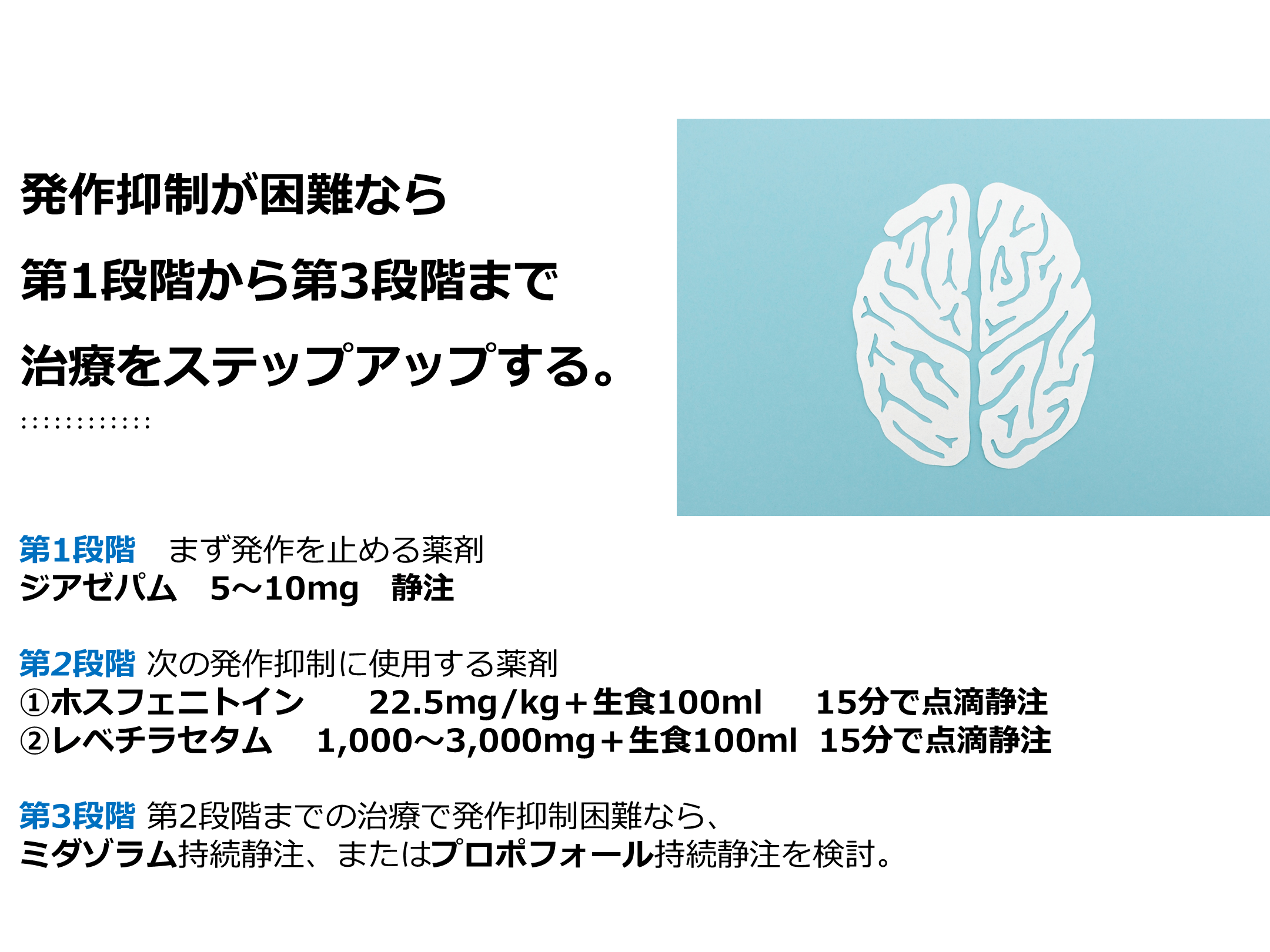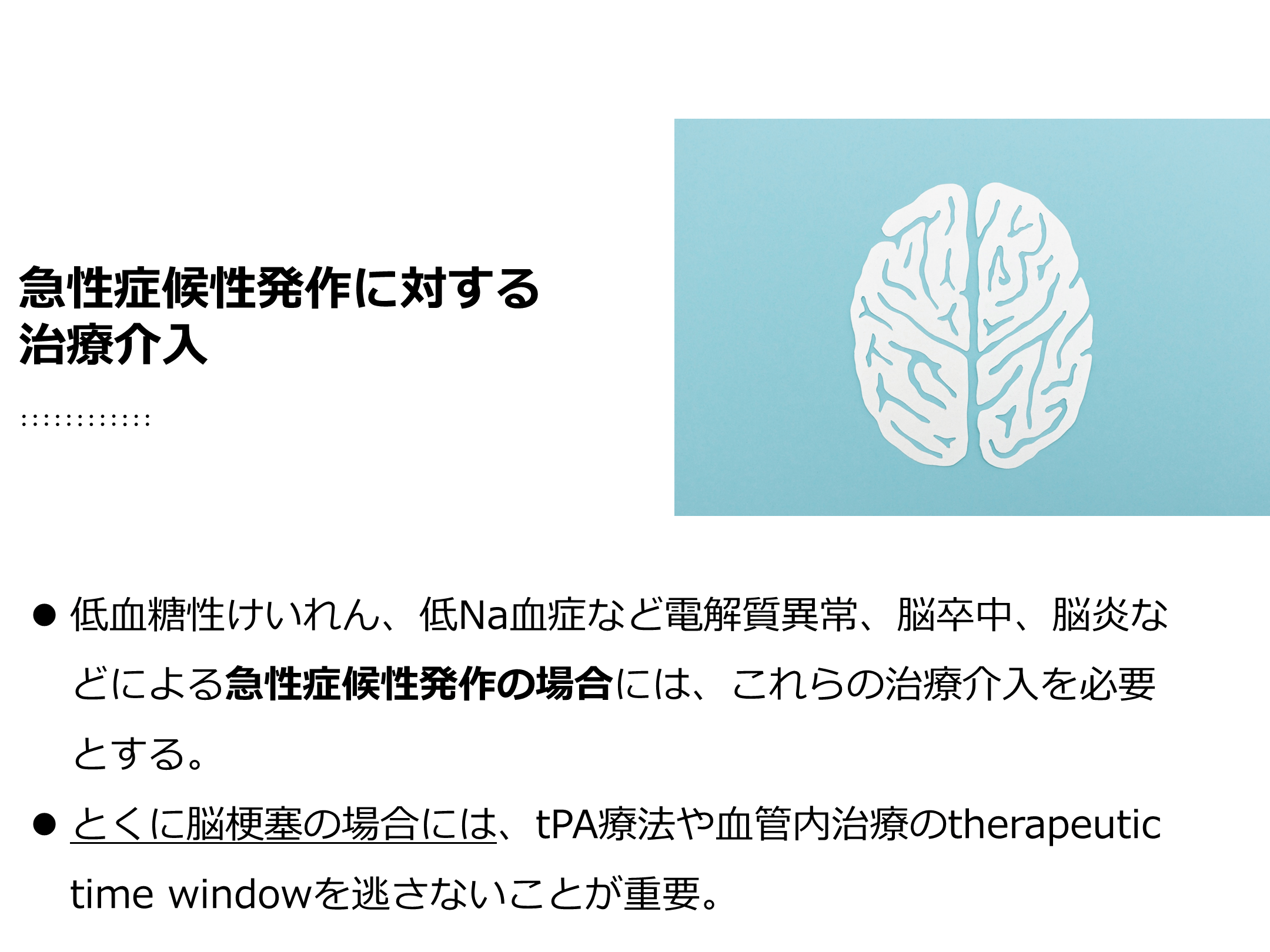 発作の原因評価と発作抑制の治療を並行して進められる 思考が必要です。