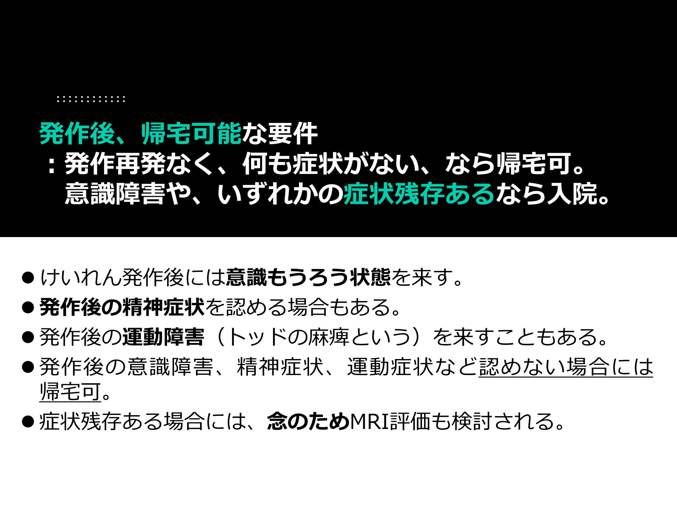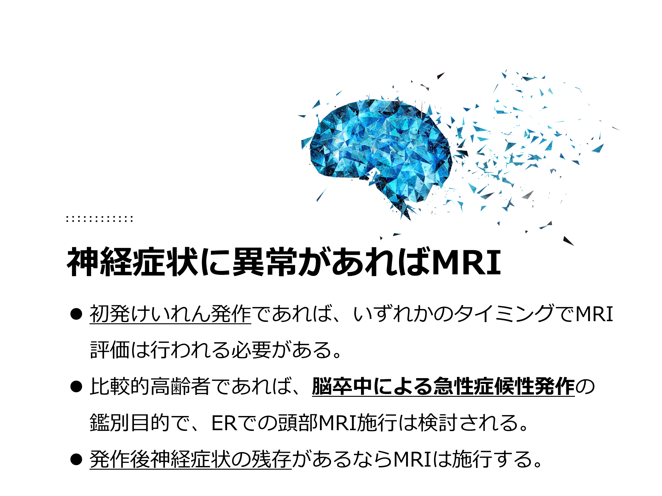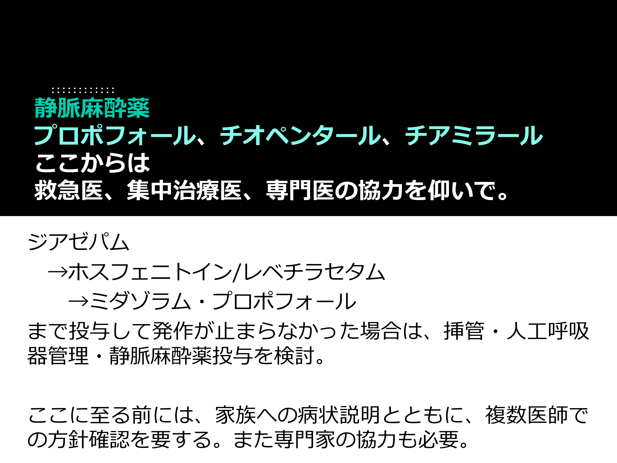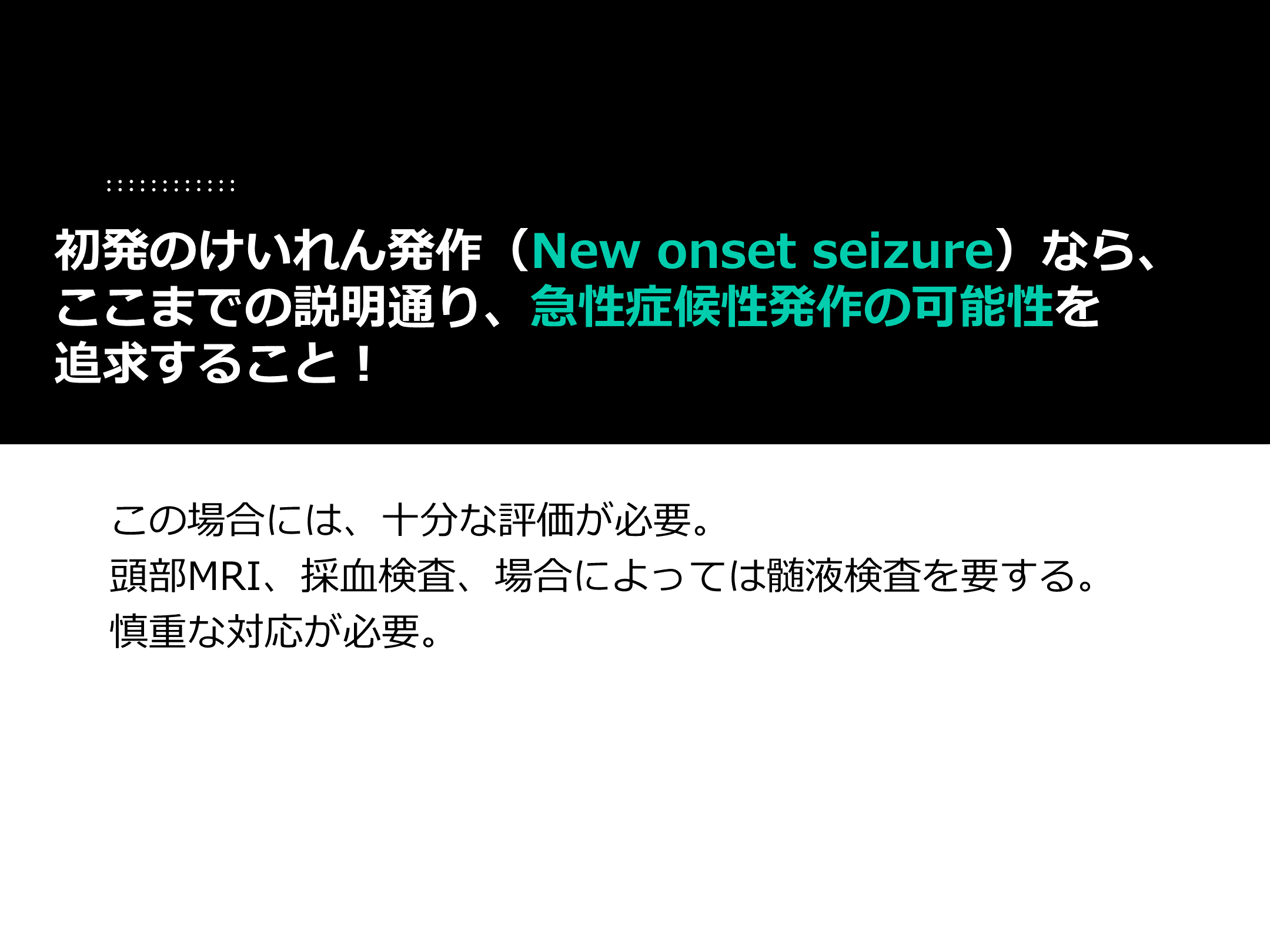 発作の原因評価と発作抑制の治療を並行して進められる 思考が必要です。