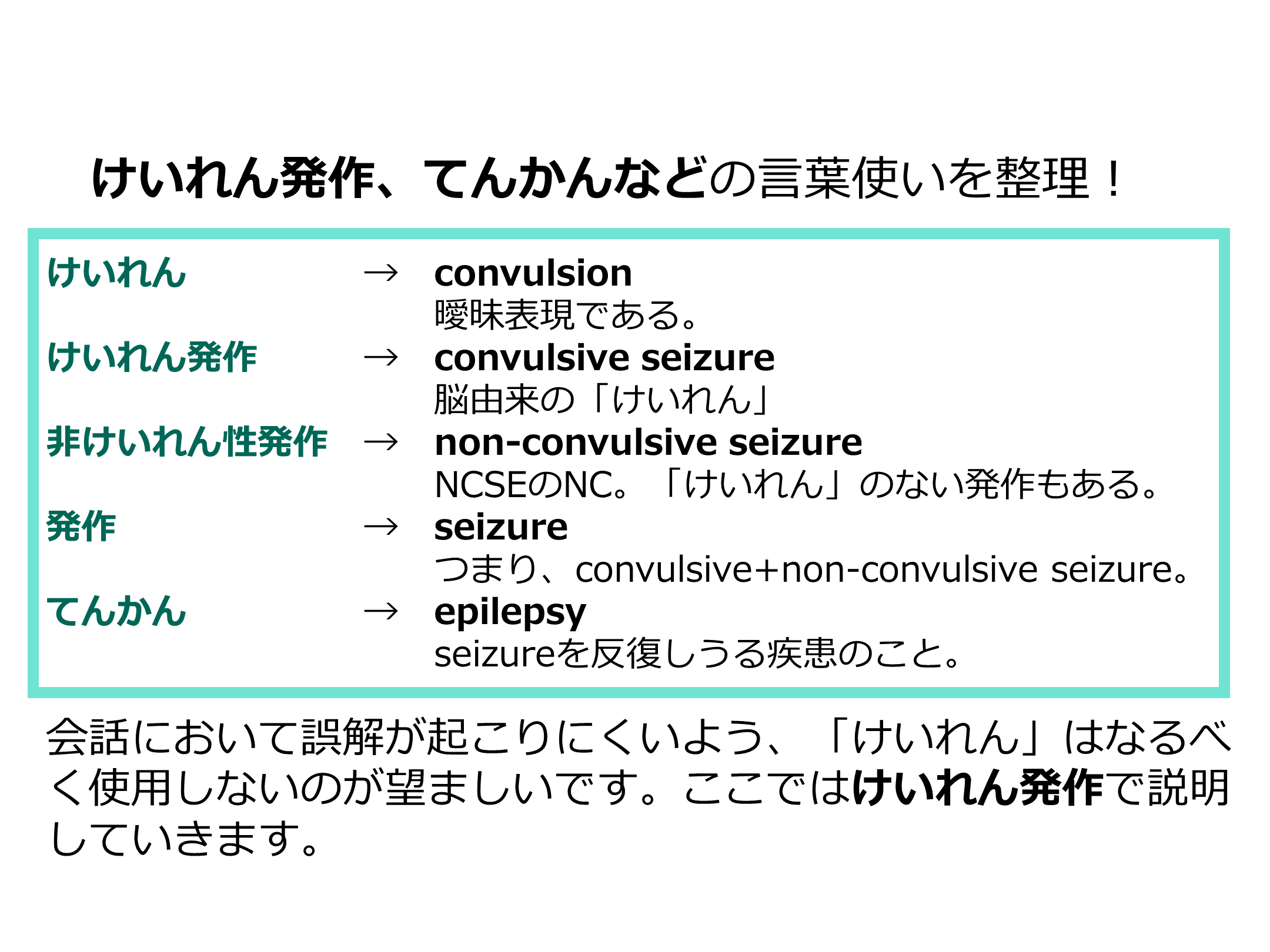 けいれん発作のないてんかん発作があることも考慮して、説明に加えています。 <平易なてんかんの説明>