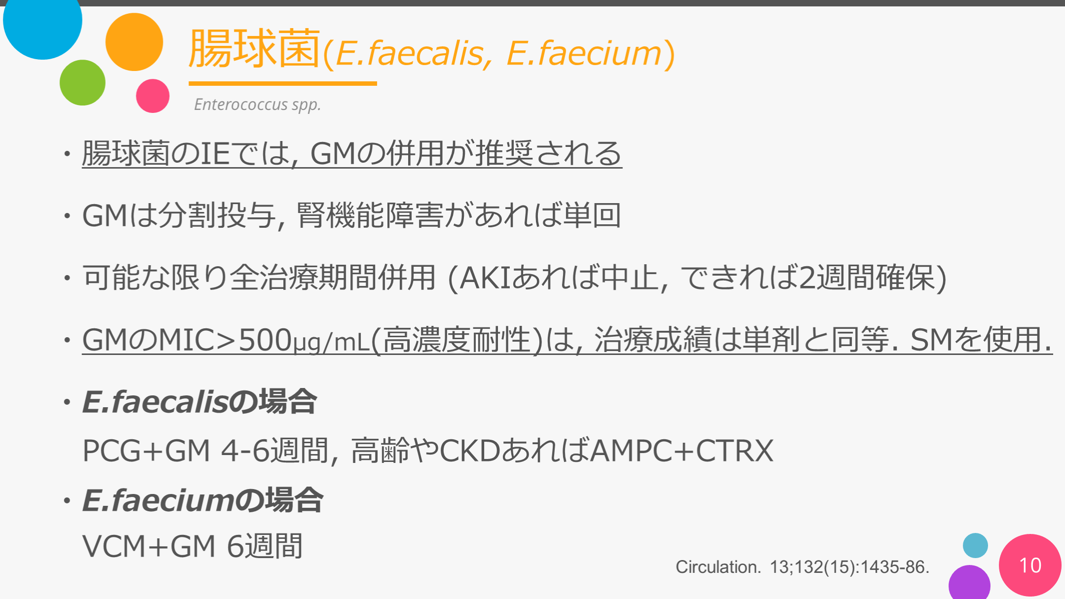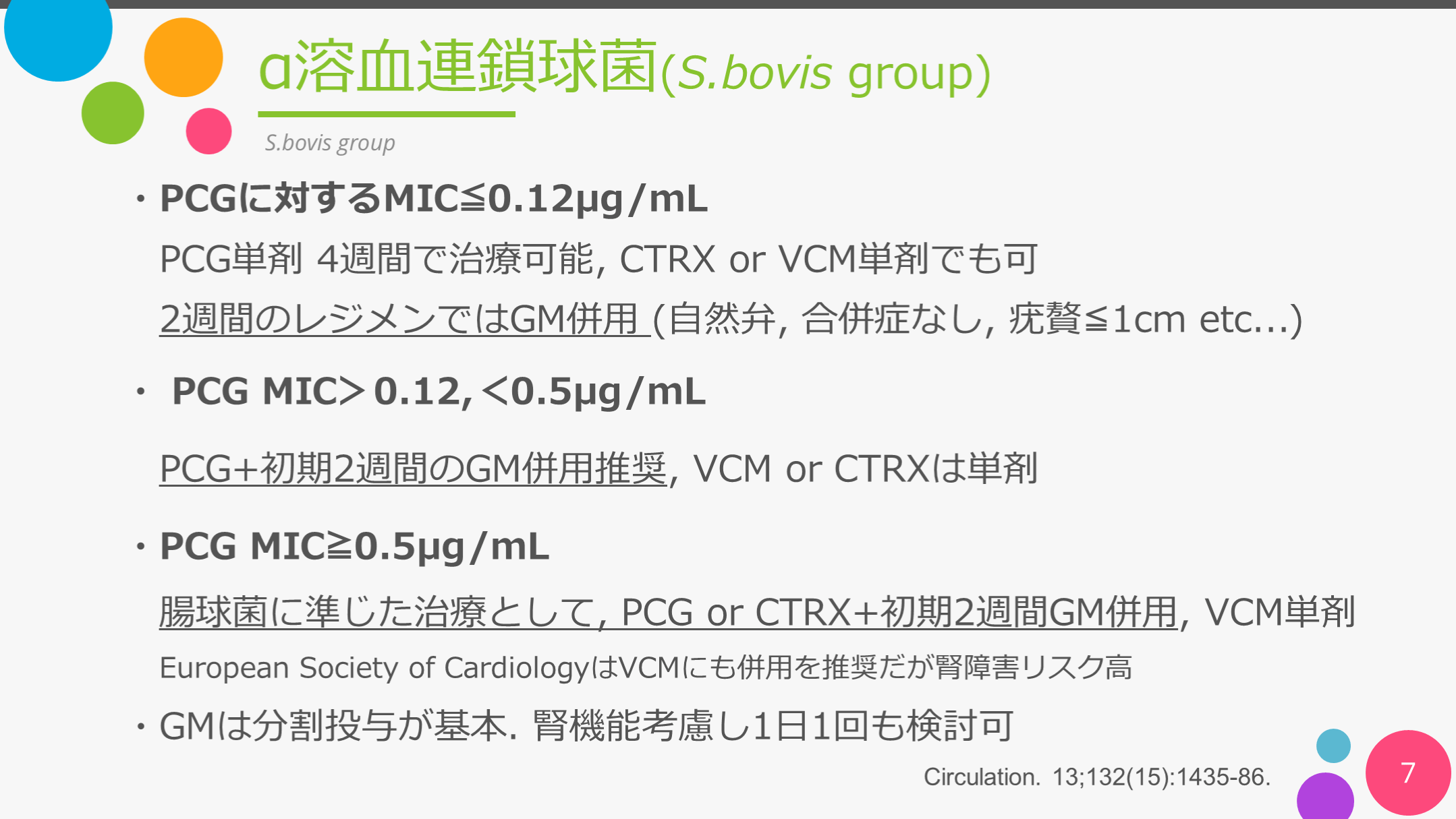 ・GMは分割投与が基本. 腎機能考慮し1日1回も検討可 Circulation. 13;132(15):1435-86.