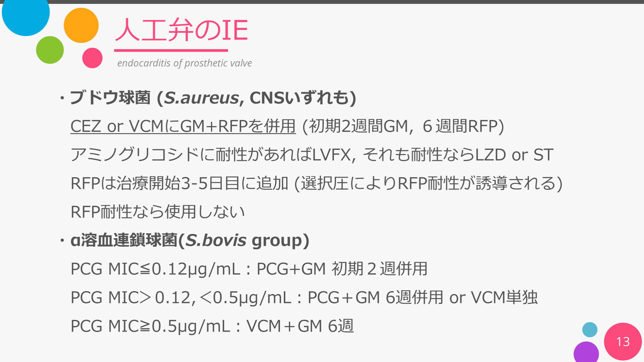 #13. 人工弁のIE 13 endocarditis of prosthetic valve ・ブドウ球菌 (S.aureus, CNSいずれも)