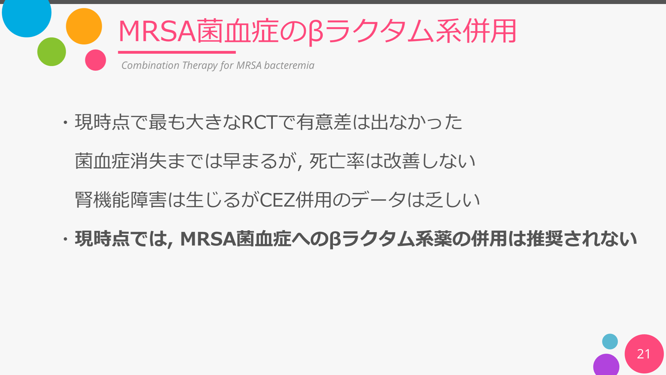 #21. 21 Combination Therapy for MRSA bacteremia ・現時点で最も大きなRCTで有意差は出なかった