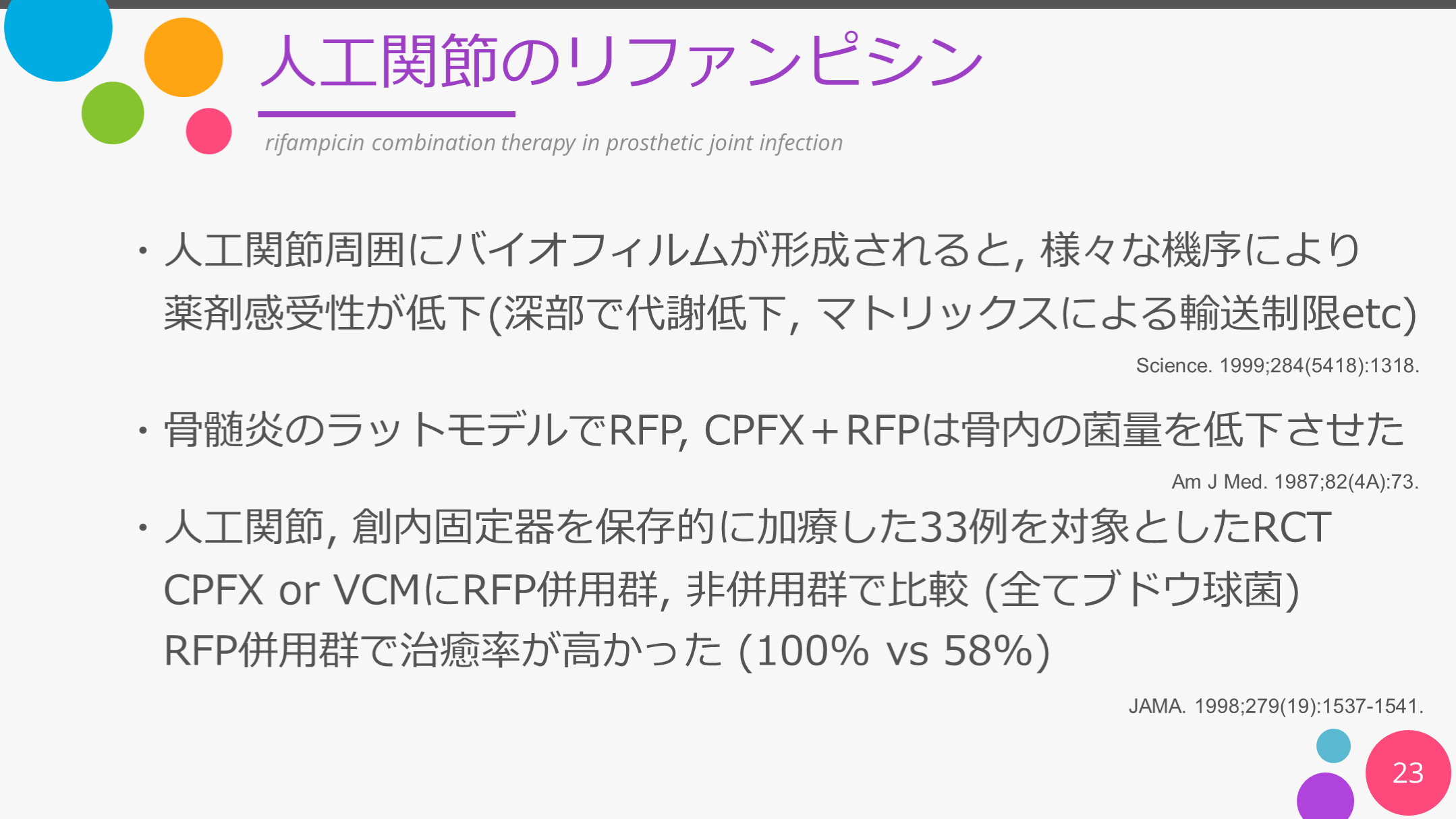 #23. 人工関節のリファンピシン 23 rifampicin combination therapy in prosthetic joint infection