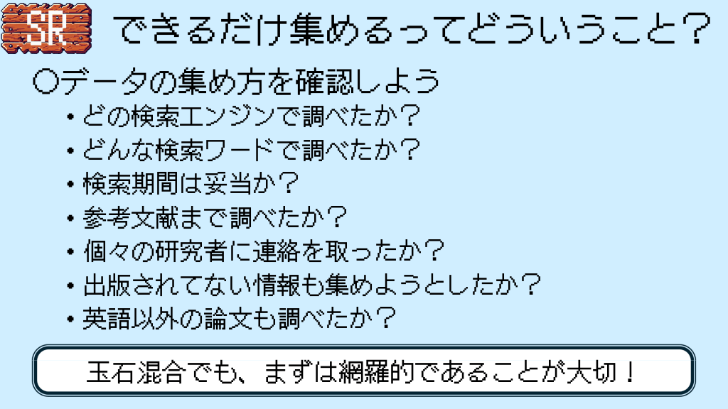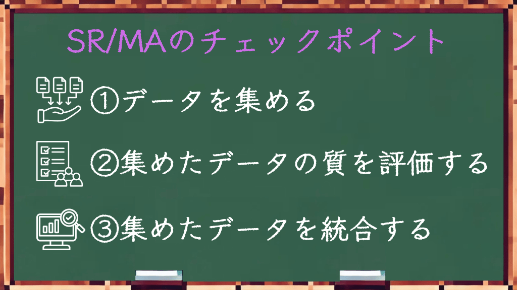 #13. SR/MAのチェックポイント ①データを集める ②集めたデータの質を評価する ③集めたデータを統合する