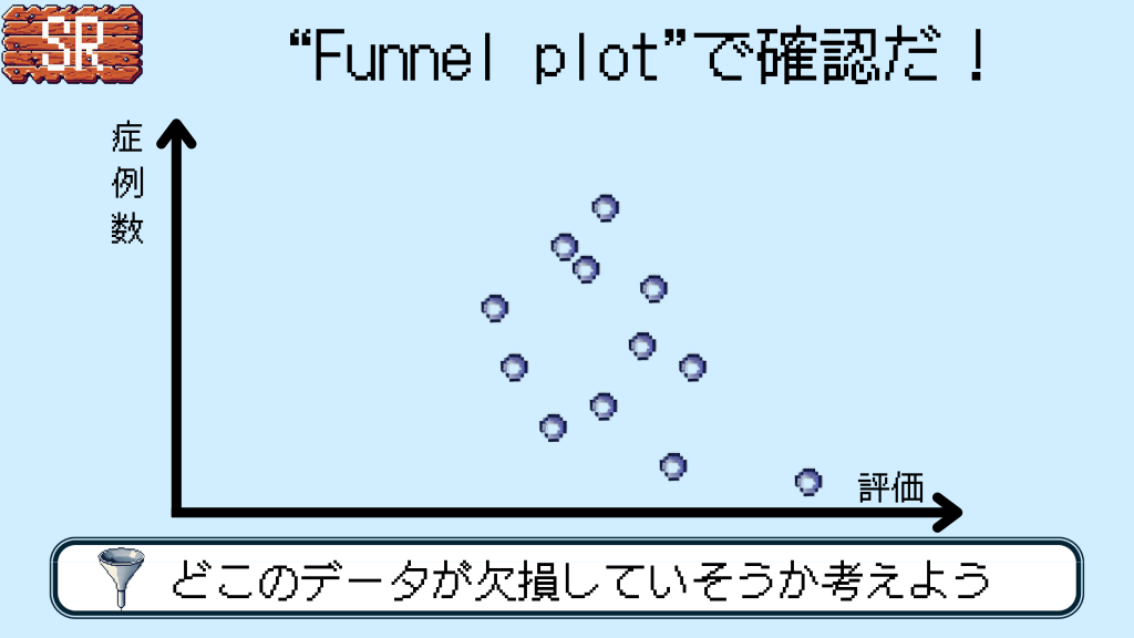 #21. SR “Funnel plot”で確認だ! 症 例 数 評価 どこのデータが欠損していそうか考えよう