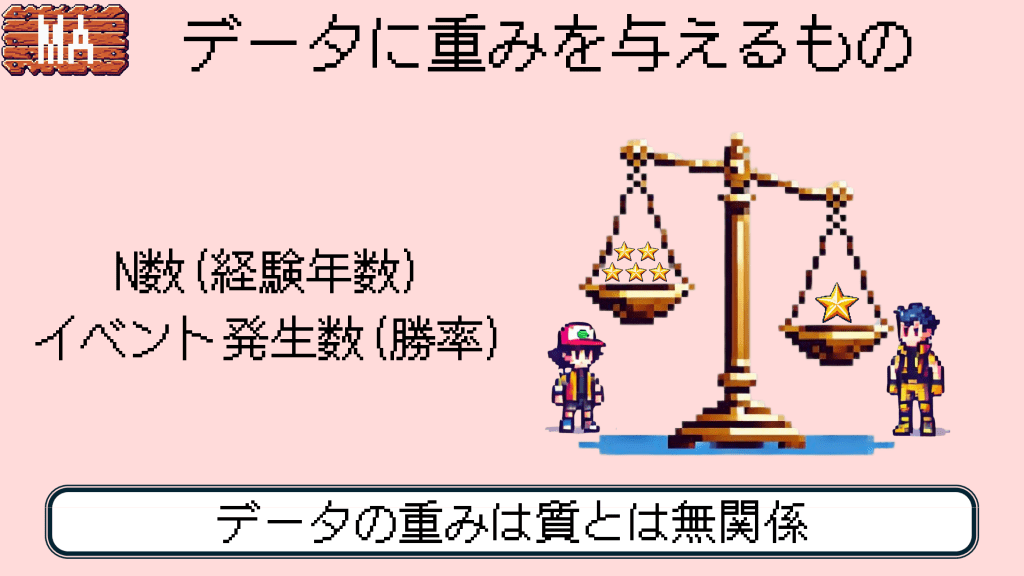 #37. MA データに重みを与えるもの N数(経験年数) イベント発生数(勝率) データの重みは質とは無関係