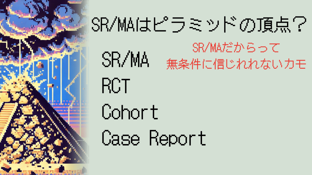 #8. SR/MAはピラミッドの頂点? SR/MAだからって 無条件に信じれれないカモ SR/MA RCT Cohort Case Report