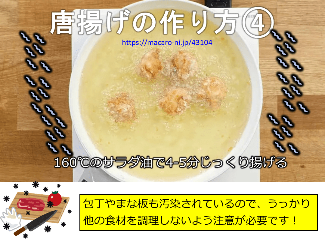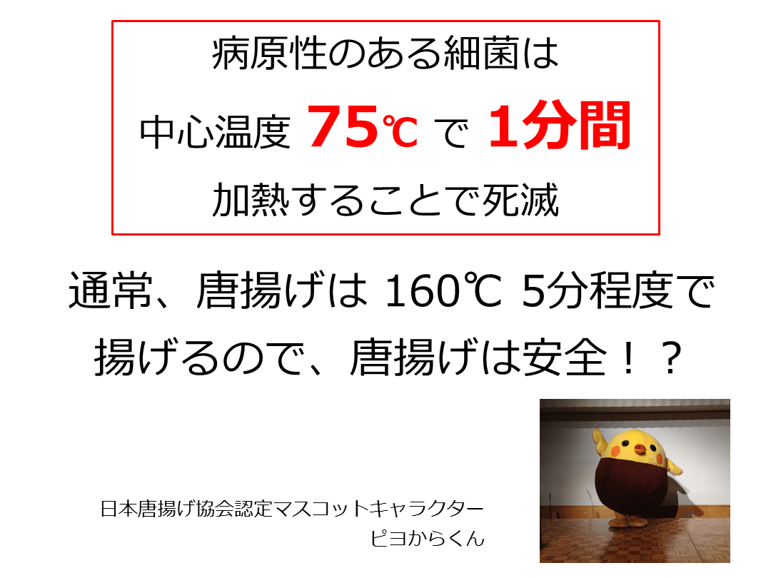 #7. 通常、唐揚げは 160℃ 5分程度で揚げるので、唐揚げは安全!? 病原性のある細菌は