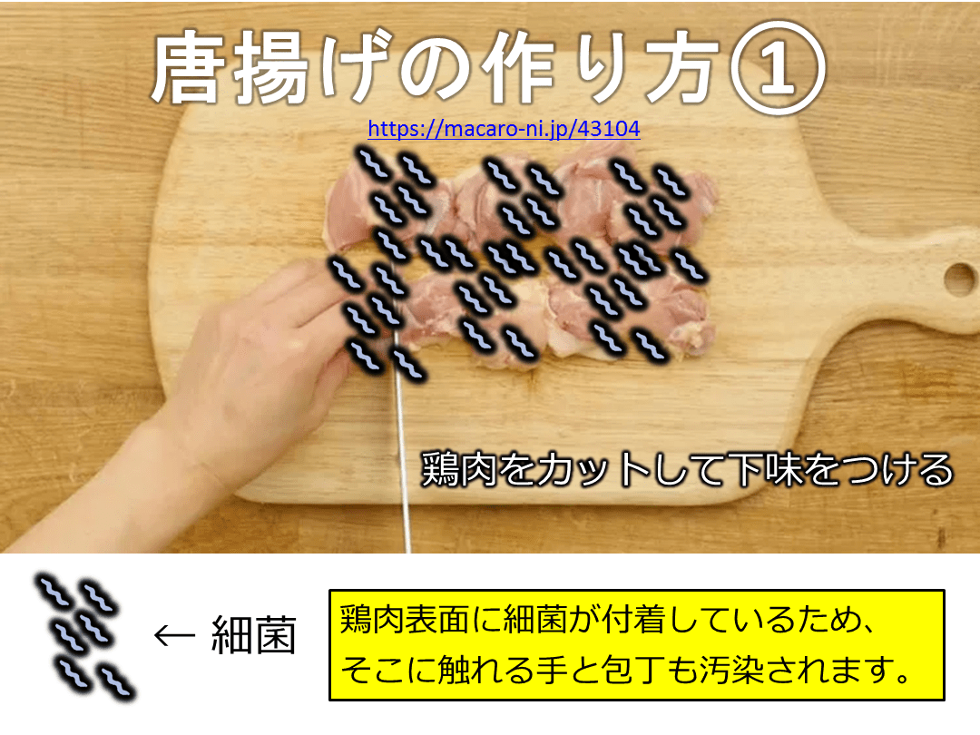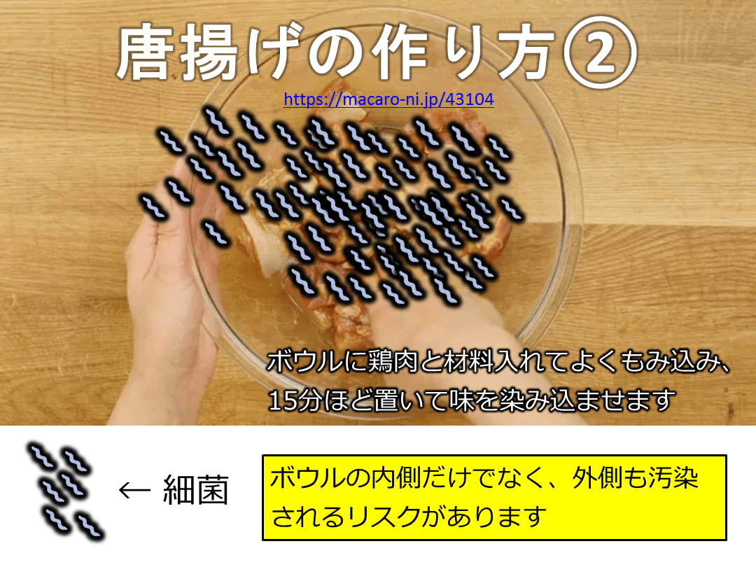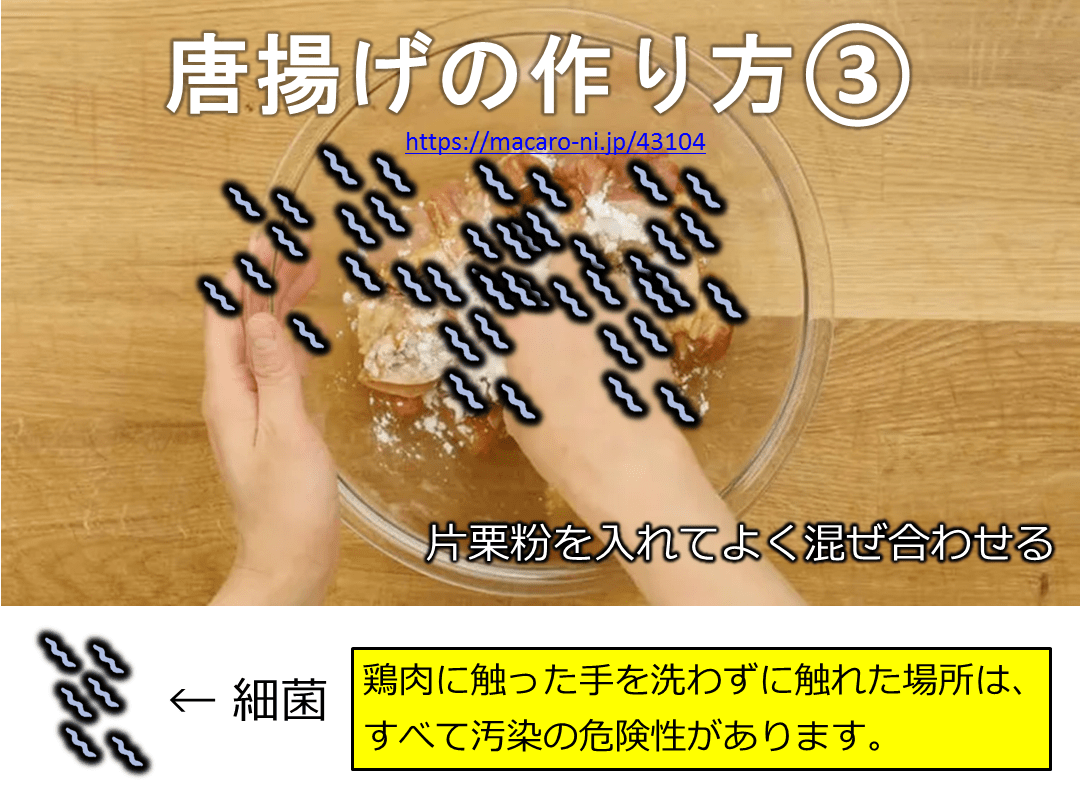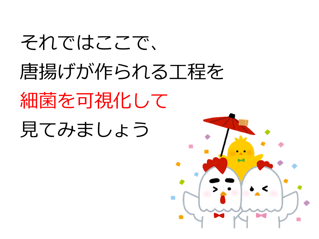 #8. それではここで、唐揚げが作られる工程を細菌を可視化して見てみましょう