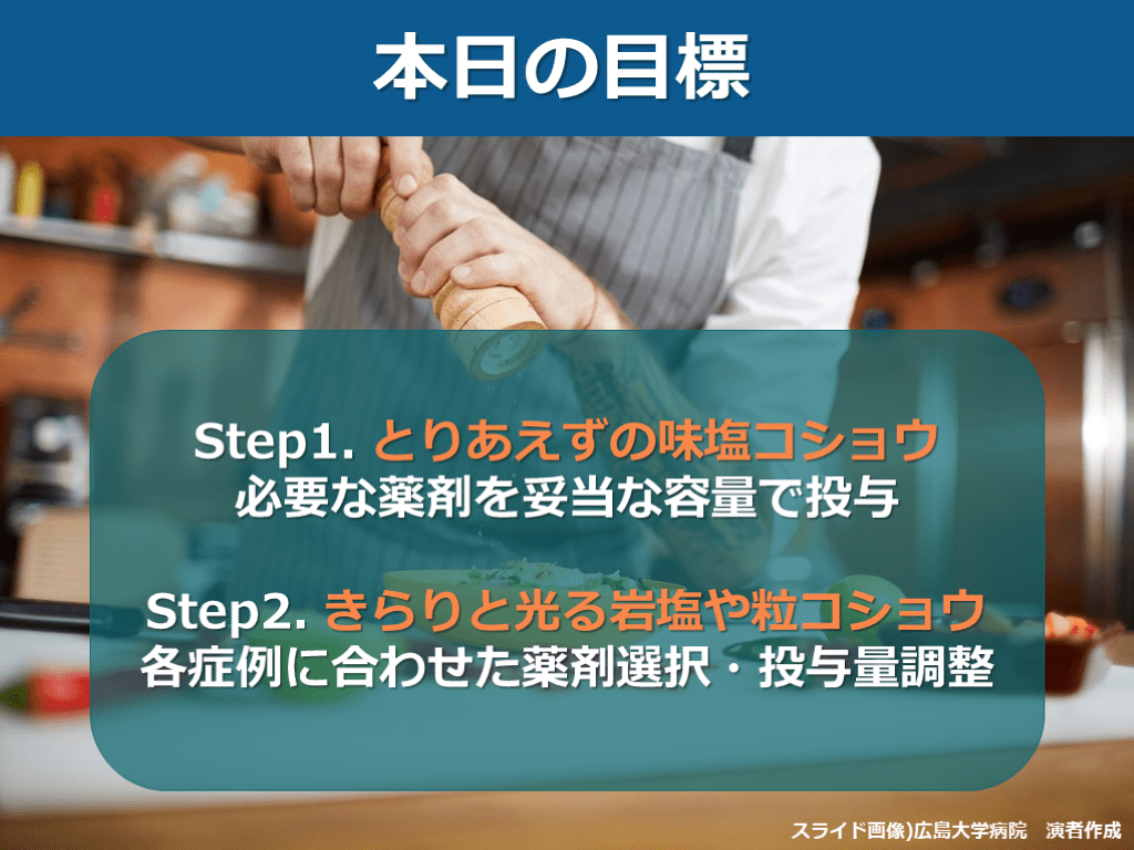 各症例に合わせた薬剤選択・投与量調整 スライド画像)広島大学病院 演者作成
