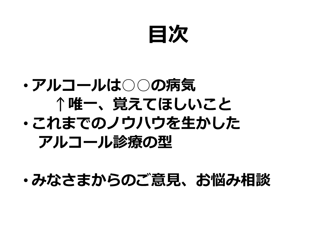 総合診療医、家庭医を対象としたアルコール使用障害の勉強会で使用したスライドです。