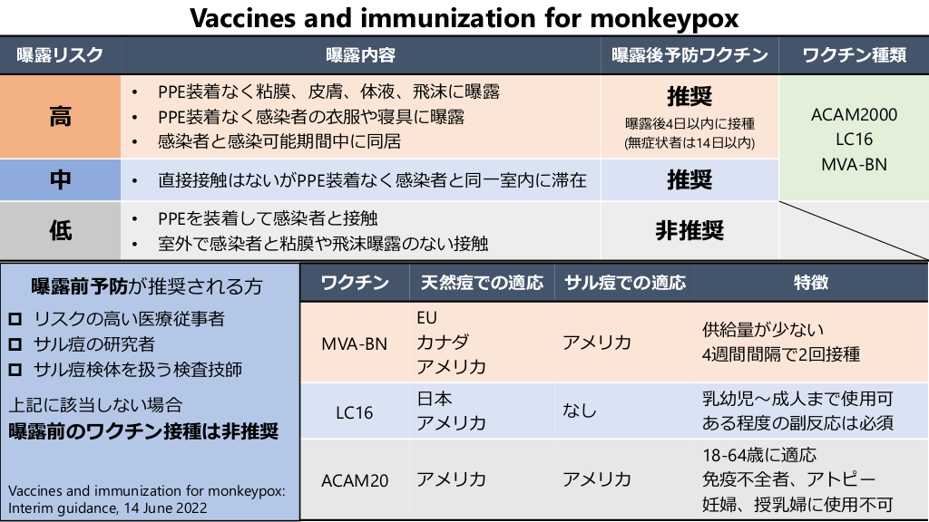 サル痘のワクチンと曝露リスク