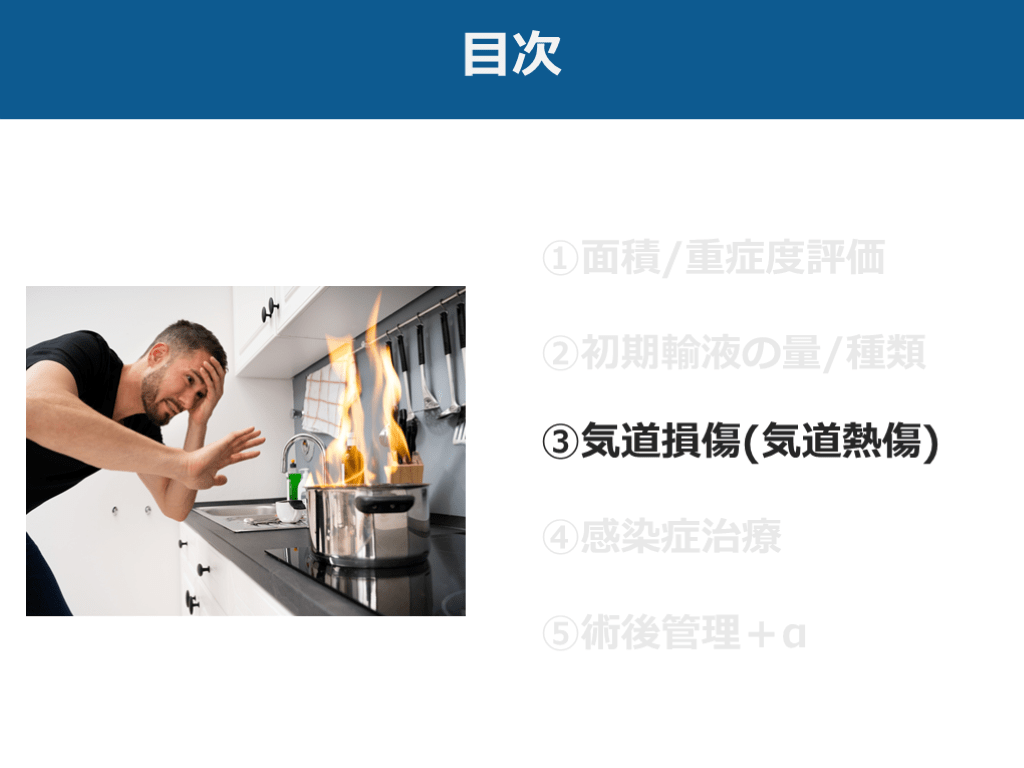 ・顔面,手,足のⅢ度熱傷 ・気道損傷の合併