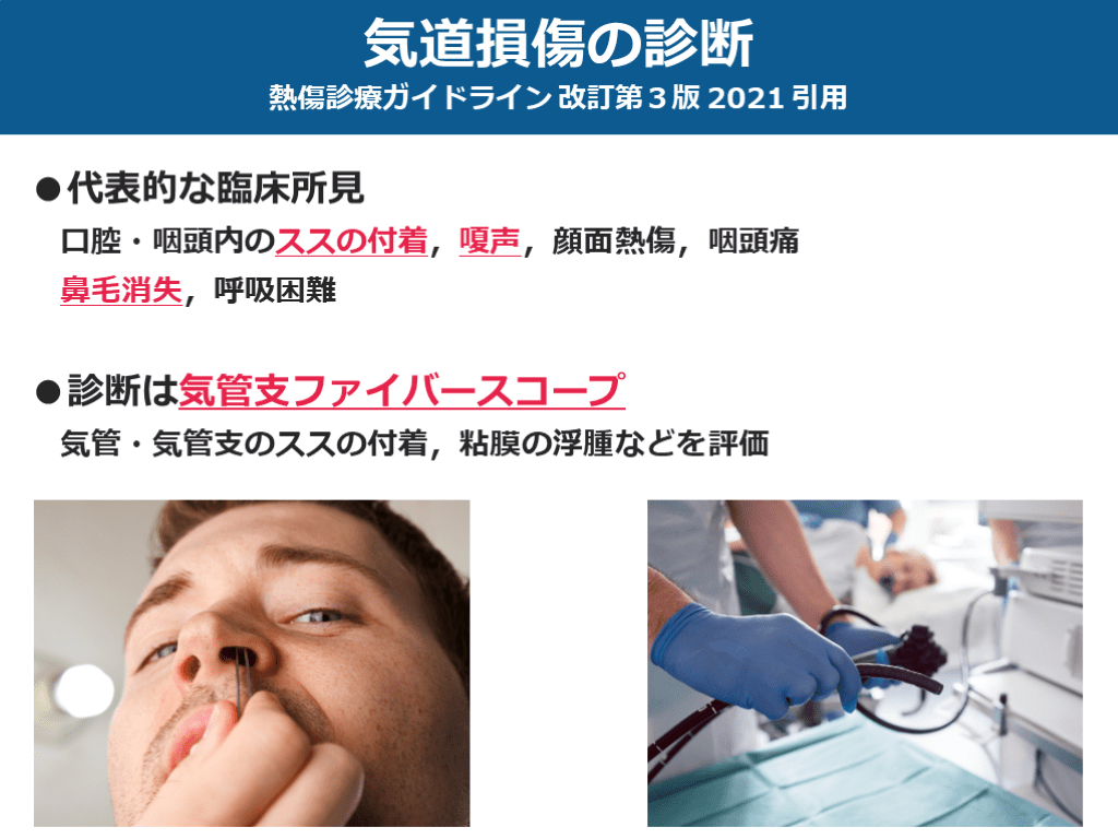 気管・気管支のススの付着,粘膜の浮腫などを評価